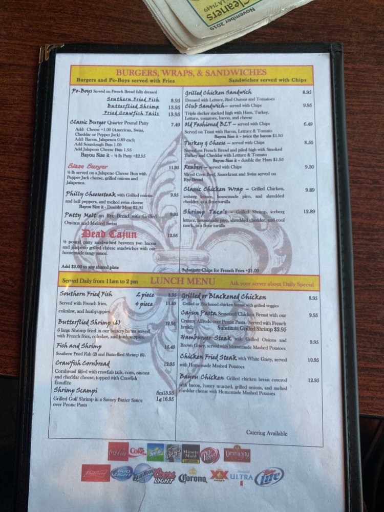 Bayou Crawfish Restaurant in Many, LA, delivers a true taste of Louisiana with its Cajun/Creole seafood menu. From the flavorful Bayou Chicken to the crispy Fried Crawfish Tails and hearty Shrimp Creole, each dish is a celebration of Southern flavors. The menu also offers must-try appetizers like the Fire Flies and Fried Pickles for a unique culinary experience. Customers rave about the friendly service and cozy ambiance, with one reviewer praising the "old southern charm" of the place. While some mention small portion sizes, the overall dining experience is rated highly. Bayou Crawfish Restaurant is a hidden gem for those craving authentic Cajun cuisine in a warm and welcoming setting.